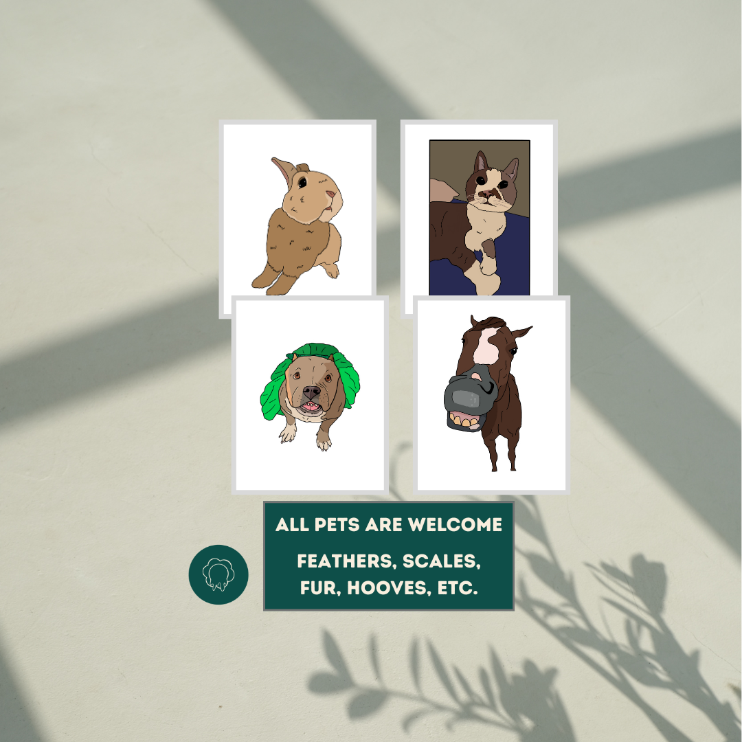 Turn your favorite fur baby (or feathered, scaled, or hoofed friend) into a pack of personalized, high-quality stickers! Each pack features original artwork by Moosifer Designs, lovingly illustrated from your photos. Whether it's a derpy face, a sleepy snoot, or their signature side-eye, we capture your pet’s true essence—one sticker at a time.